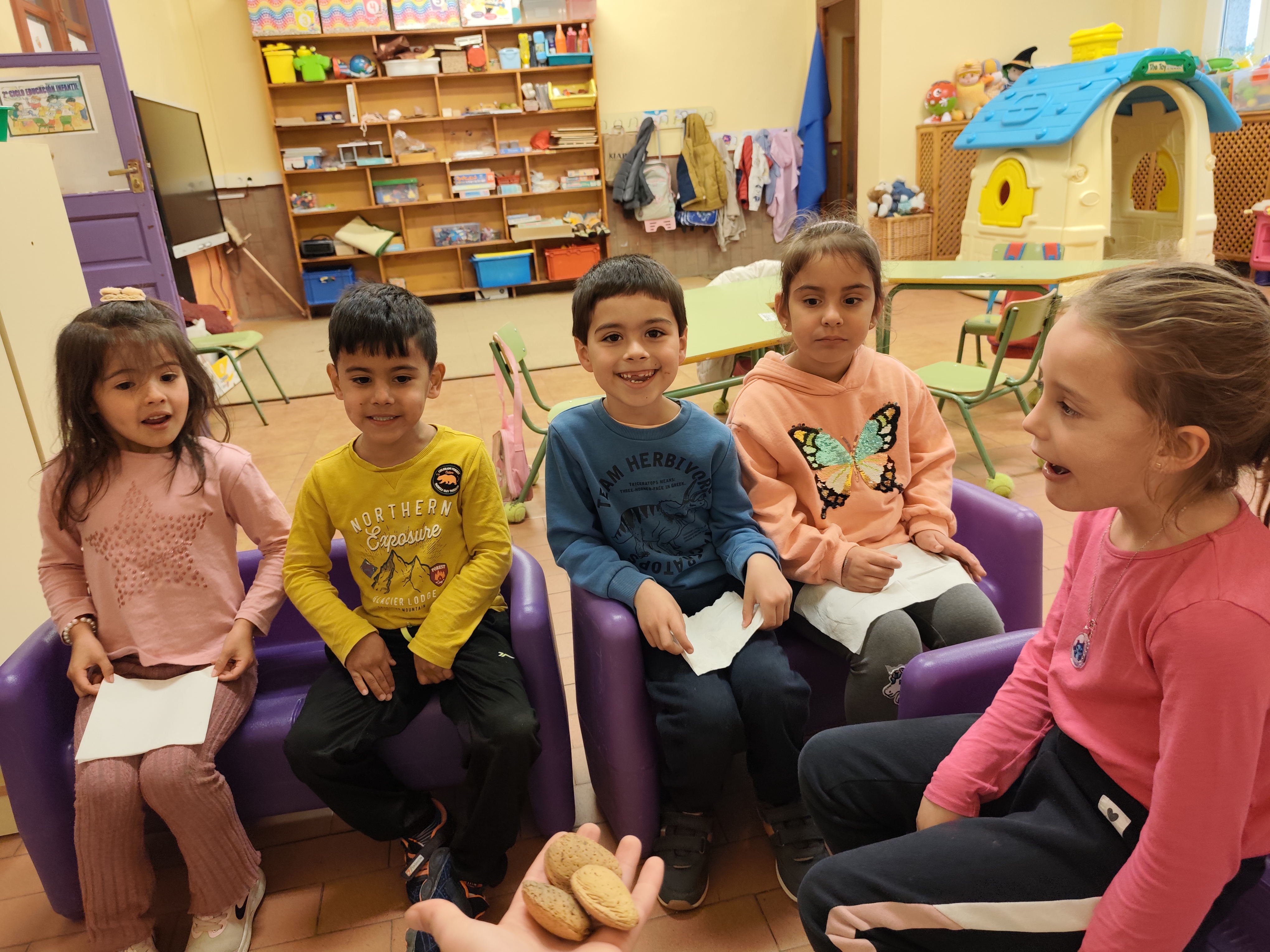 Este año, hemos visto el cuento "Arturo y Clementina" con nuestros compañeros mayores. Hemos escuchado muy atentos y hemos aprendido que tenemos que rodearnos de gente que nos ayude, nos apoye en nuestros sueños y nos haga felices.
