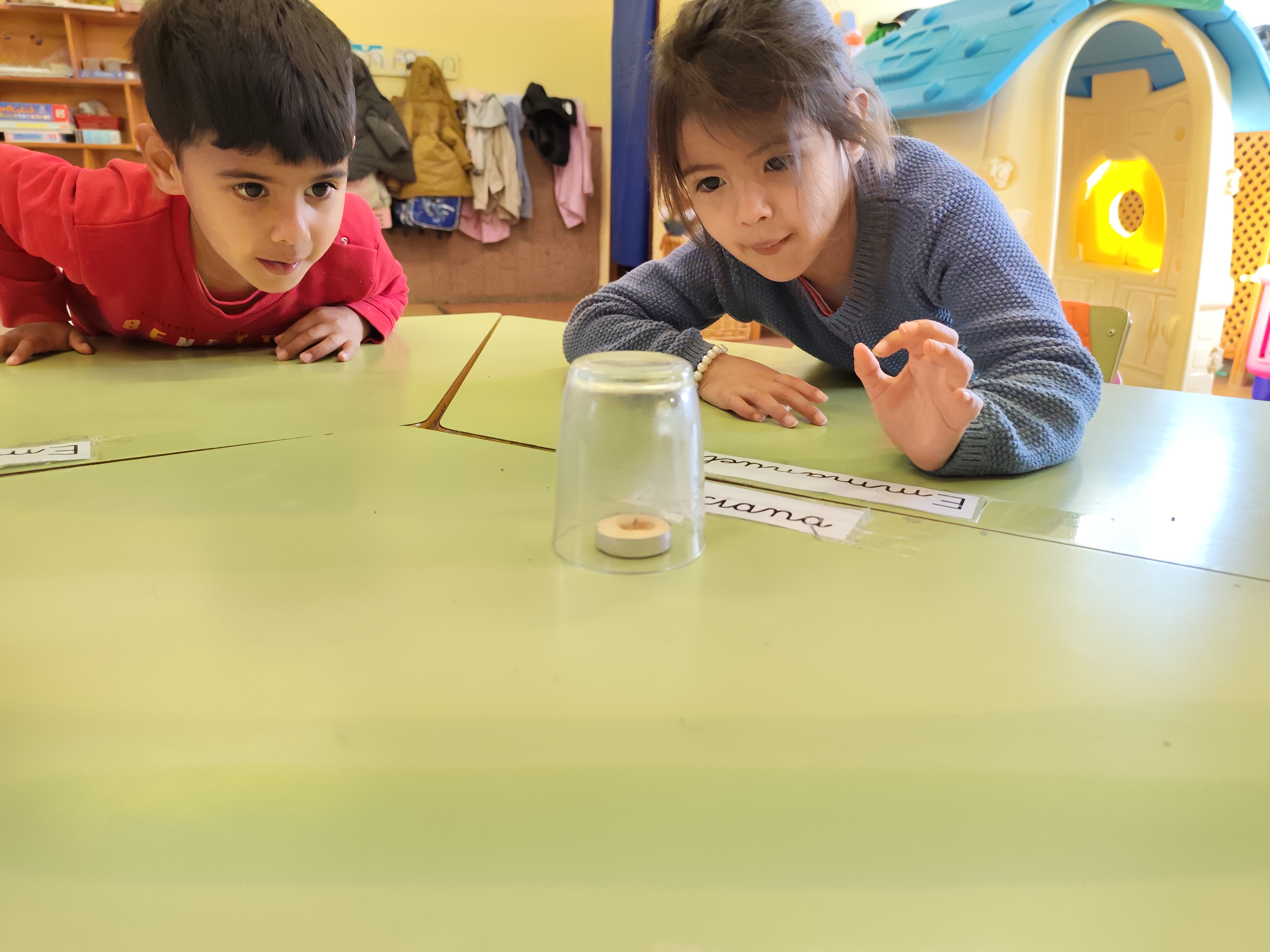 En nuestros experimentos de los viernes aprendemos un montón. Hemos descubierto, que si ponemos un vaso boca abajo encima de una vela, se apaga sola (porque se acaba el oxígeno).
